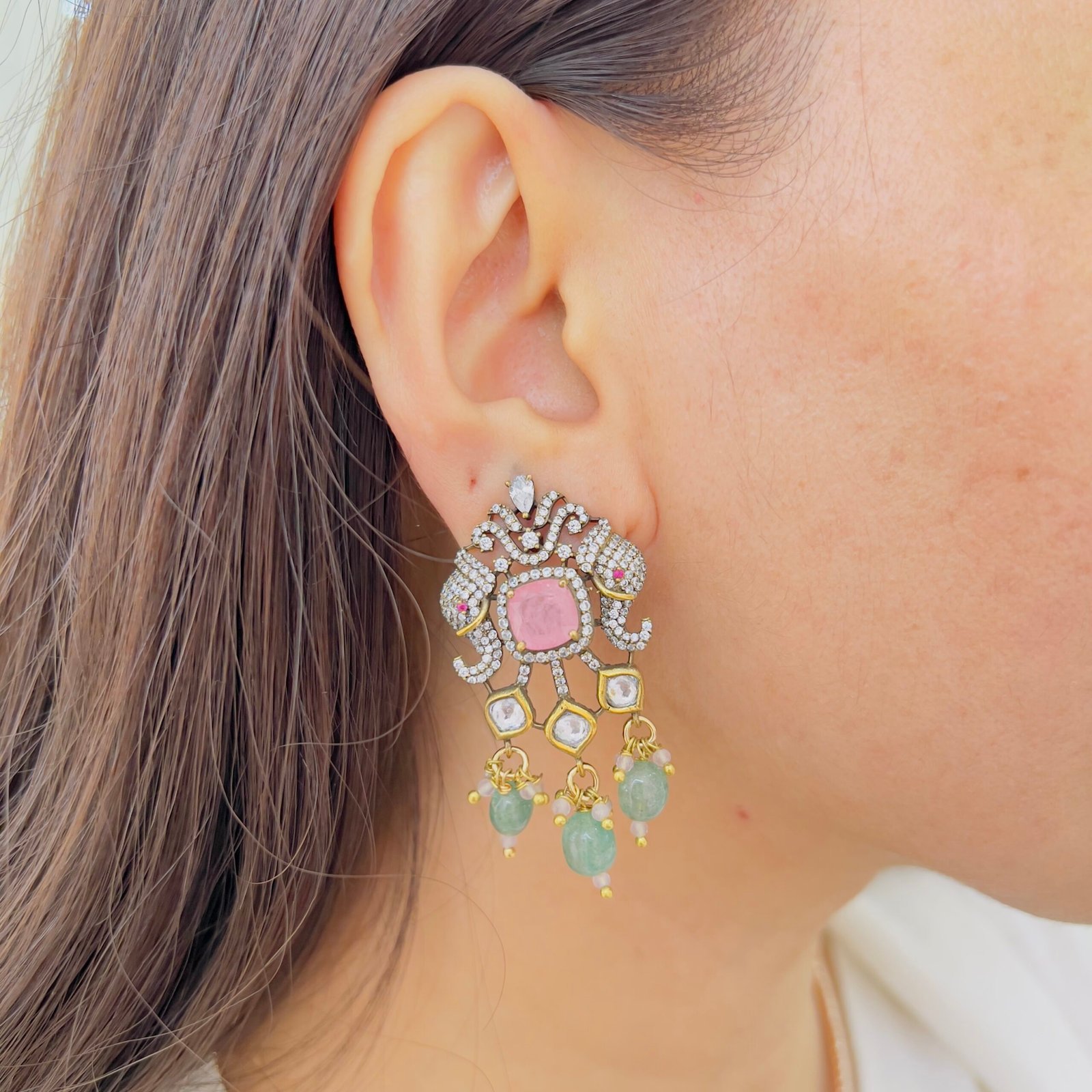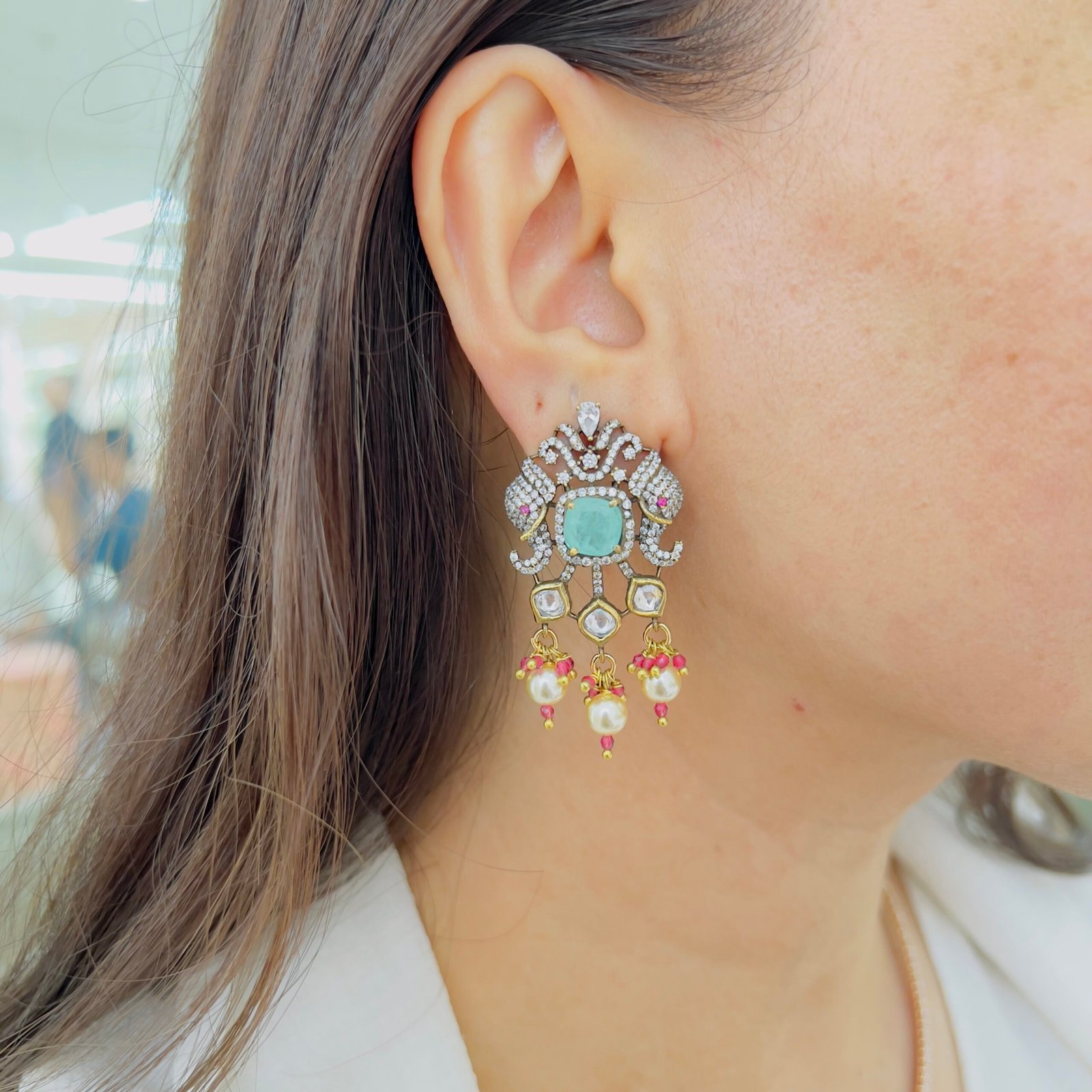 Inspired by timeless Victorian artistry, this exquisite pendant set showcases intricate detailing and refined elegance, A perfect statement piece that enhances festive, wedding, and evening looks with classic charm.