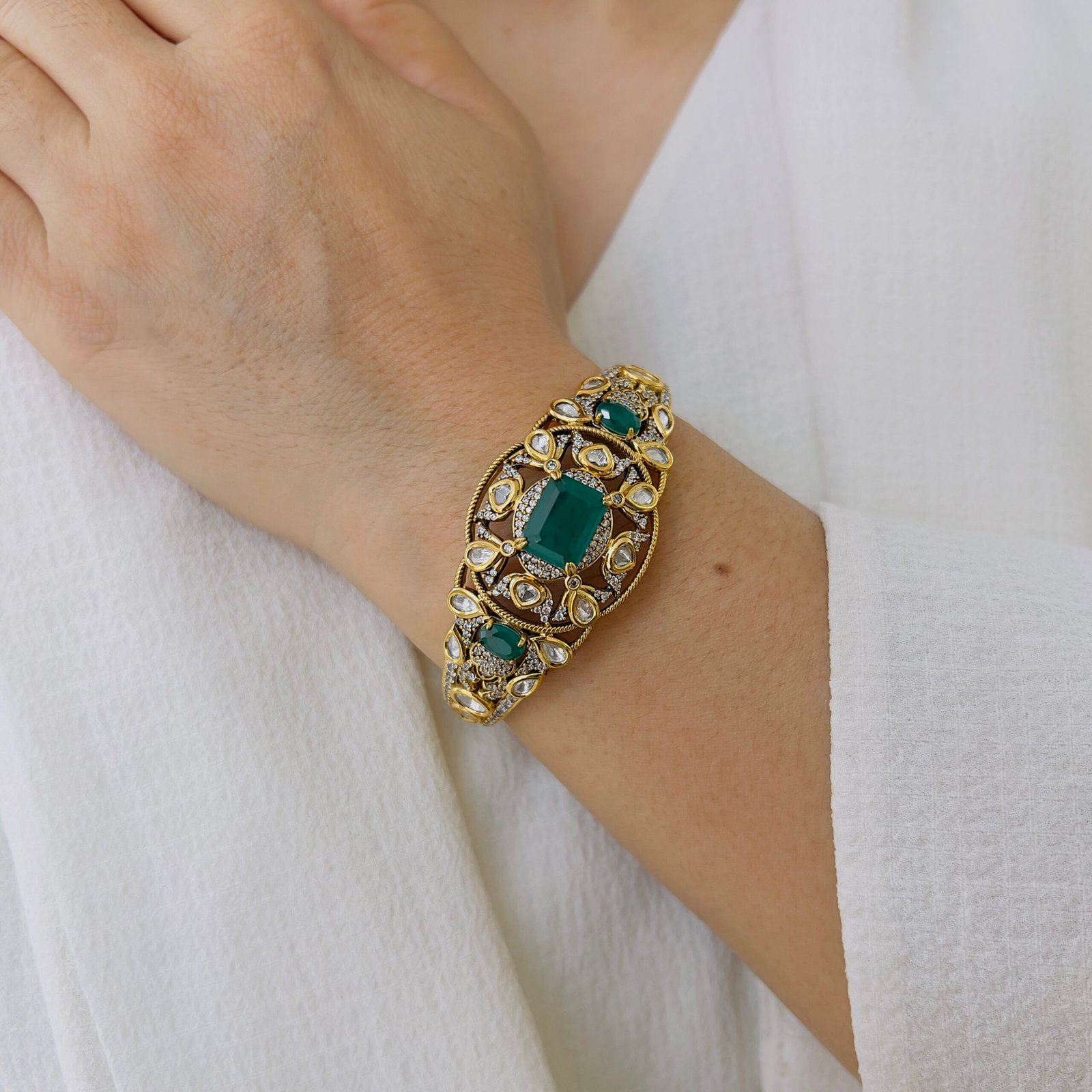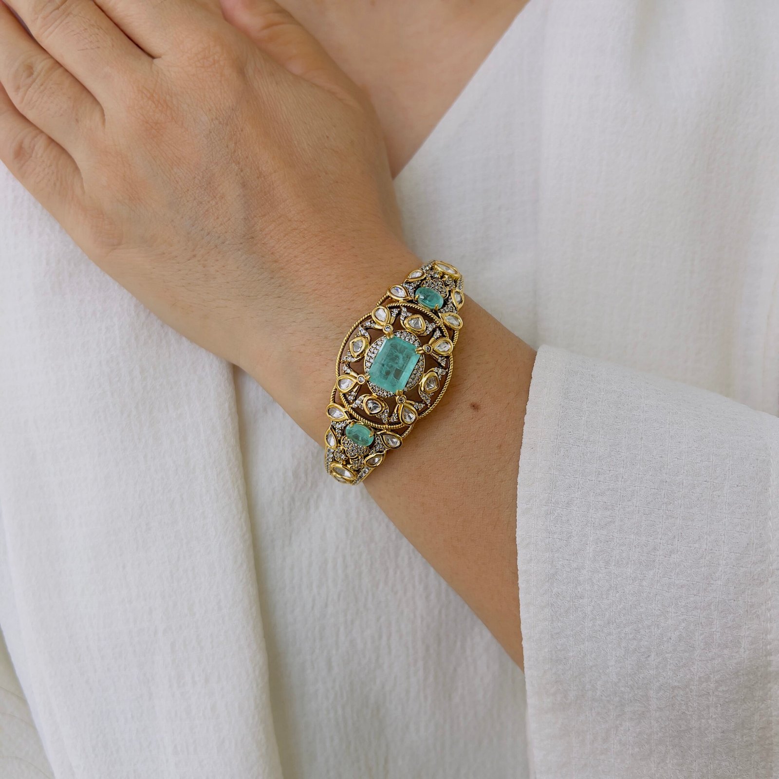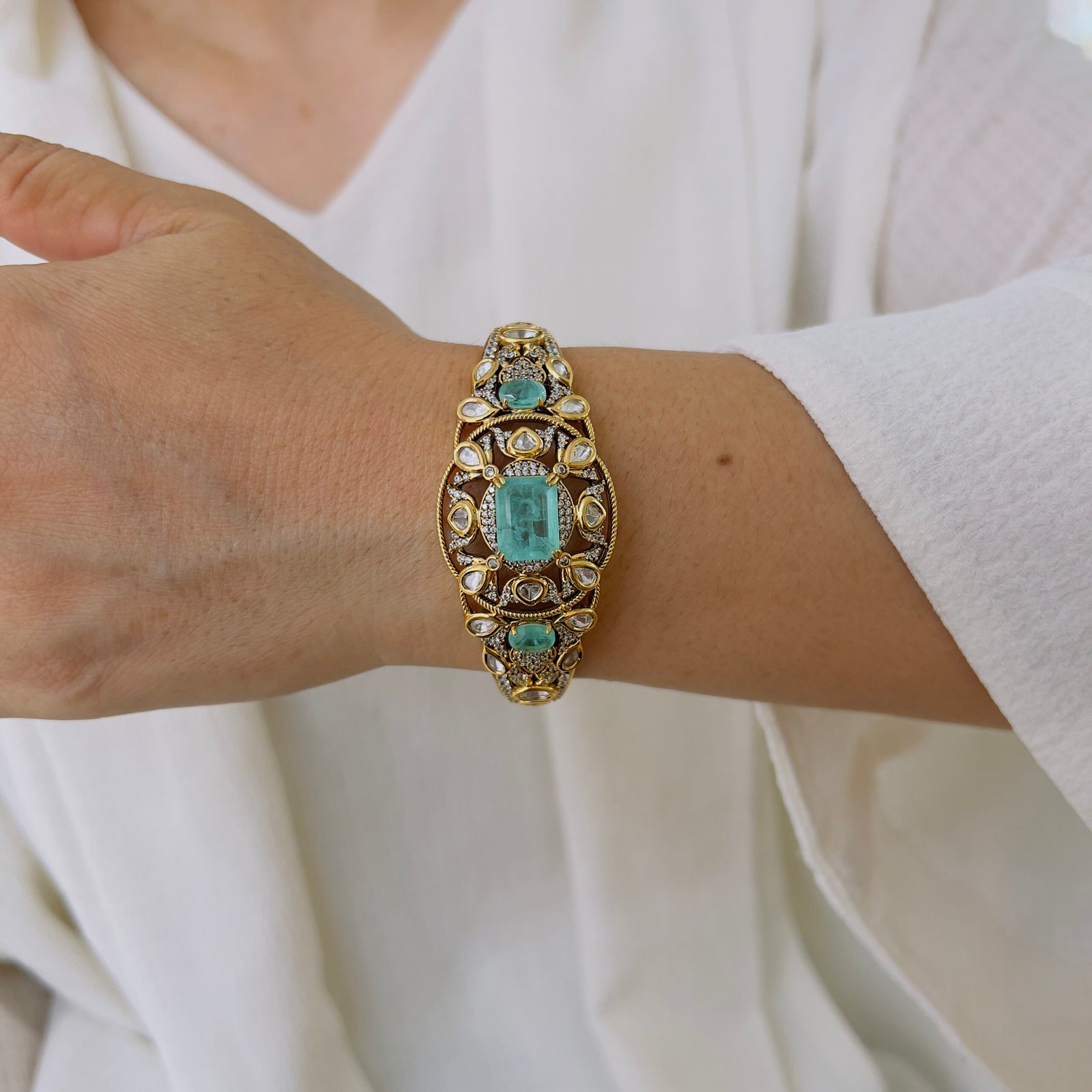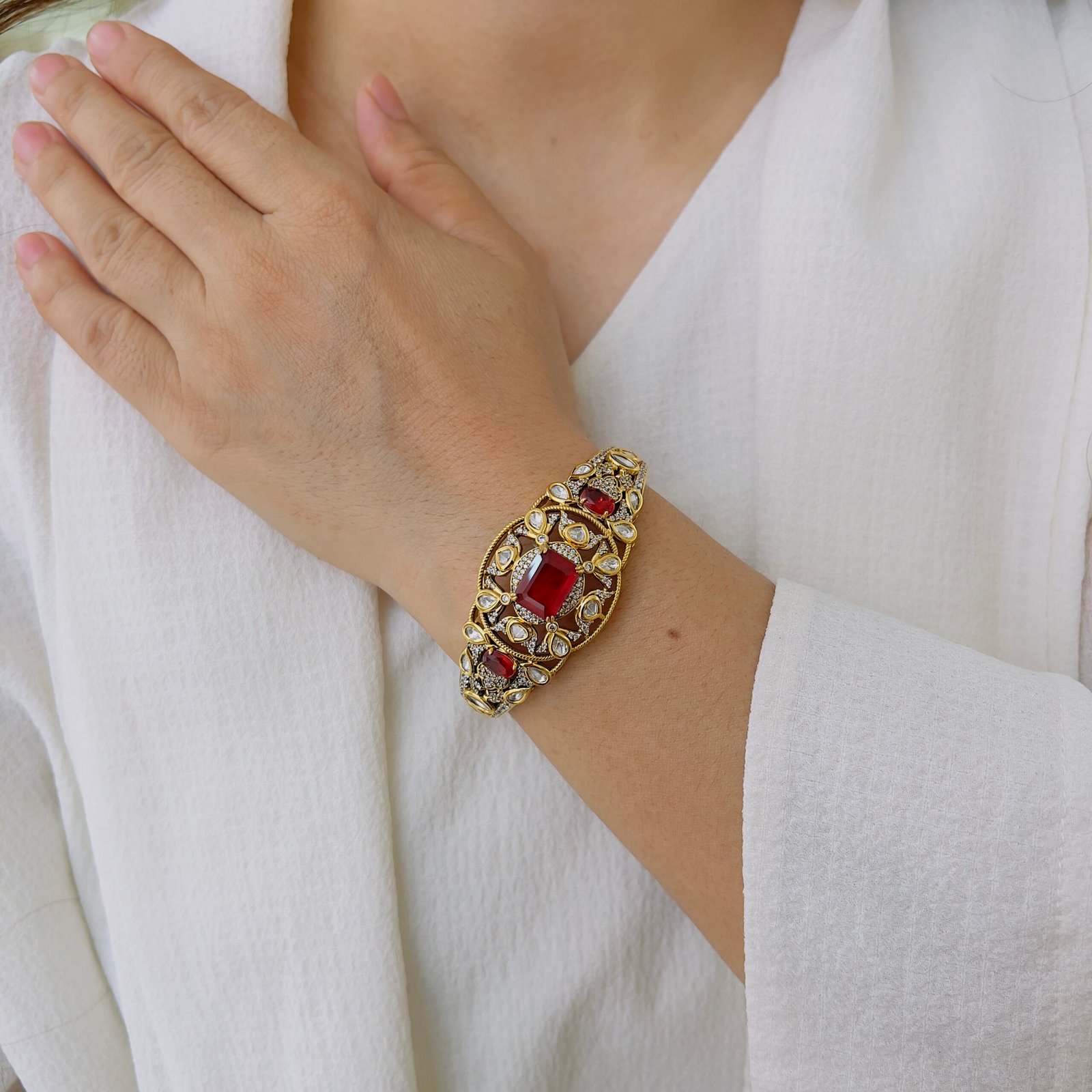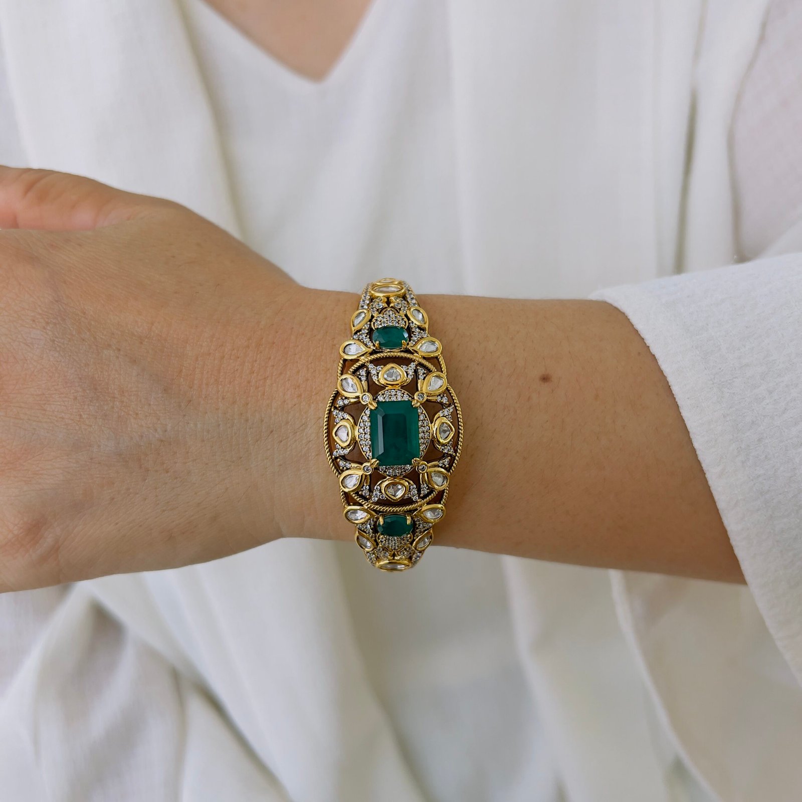 This beautifully crafted Victorian-style bracelet showcases intricate patterns and a luxurious antique finish, Designed to stand out while maintaining elegance, it’s ideal for elevating your look for special occasions or adding a royal touch to everyday styling.