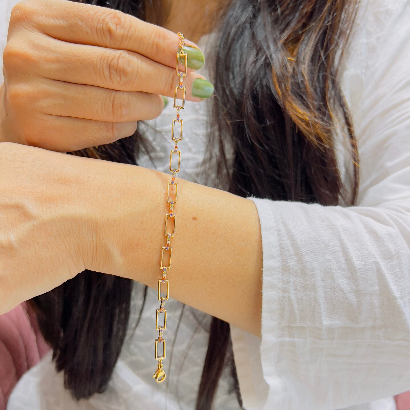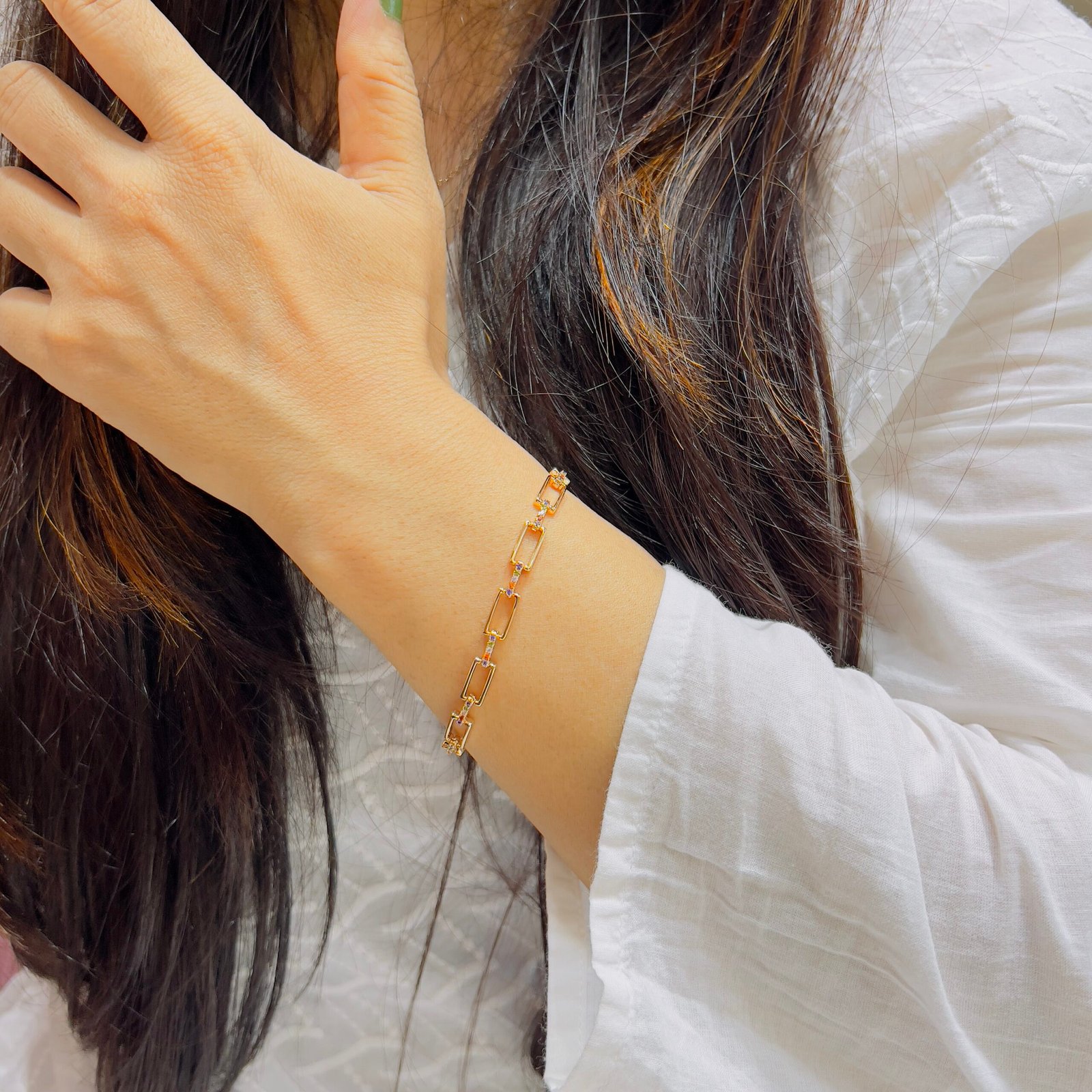 Designed for lasting brilliance, this 18k gold-plated bracelet resists tarnish while offering sleek elegance—perfectly suited for daily routines and polished professional style.
